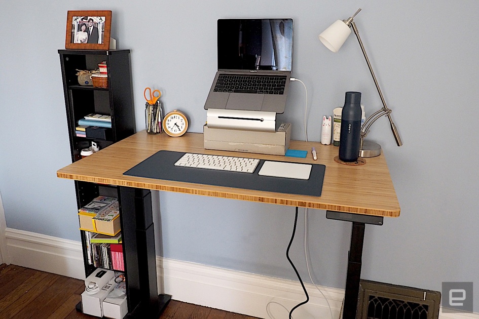 Importantly, I am also now much happier with the desk, and no longer have to suffer from poor posture. When sitting, I can lower it to the point where my elbows are at the proper 90 degrees, which I wasn’t able to do before. I also opted for the advanced controller where I can assign memory presets for my desired sitting and standing heights — pressing a single button and having it automatically go up or down is fantastic (I would’ve preferred tactile buttons to the touch-sensitive OLED ones, but it’s a minor quibble). I’m finding myself standing at my desk more frequently as a result. The desk itself is also lovely, with a handsome bamboo finish and plenty of space for my laptop, keyboard, trackpad and various other knickknacks.